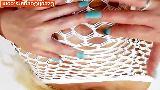 Trapped Pussy in White Fishnets, Toy Inside & Foot Tease