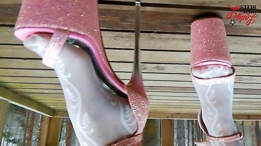 Heel popping shoeplay in nylons and young mother blowjob high-heeled shoes