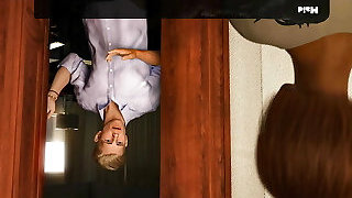Hardcore lesbian femdom scene with fashionable babes at an office