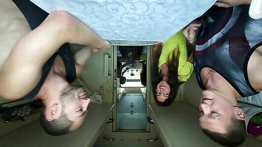 cornudo perdió a su esposa con un amigo en cartas en el tren, se ve triste mientras le folla el coño-3.6