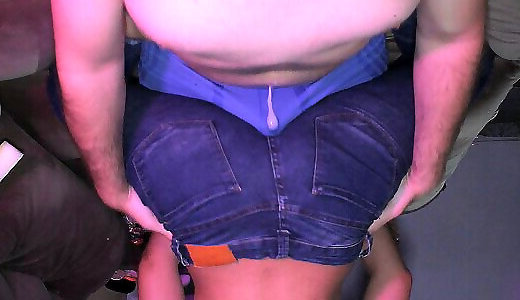 trabajo de culo seco en denim tenso, semen a través de lencería masajeando el culo