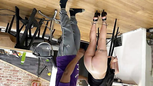hombre gordito azota a un ébano con gran culo y le rompe el coño