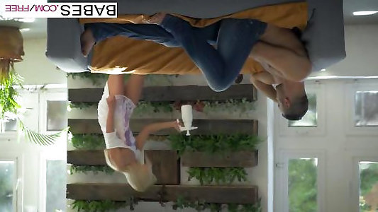 la aturdidora promiscua se deja follar dos veces por dos pollas enormes en el sofá