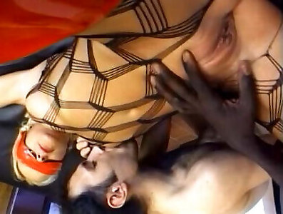 el tipo de ébano de gran polla golpea la escotilla de las rubias y luego le come el coño calvo