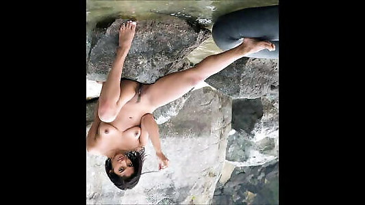 espléndida stunner seducir lentamente en una cascada maravillosa