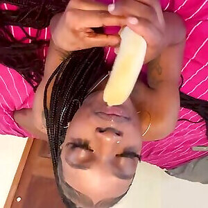 impresionante y cachonda nena toma una gran garganta profunda de plátano en lugar de lamerla