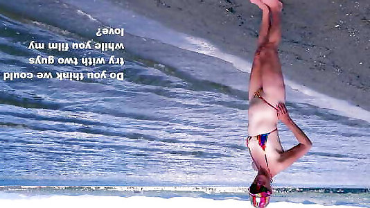 en la playa, el hijastro de mi amigo se masturba mientras me disfruta y le pido que me folle en su lugar