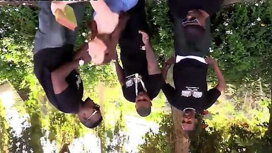 chicas africanas gonzo grupo al aire libre montando pollas gruesas