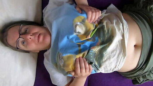 otaku con grandes tetas y gafas se masajea mientras está desnuda