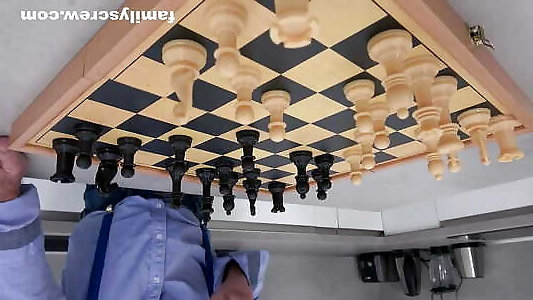 jugando al ajedrez con el abuelo mientras la abuela está debajo de la mesa