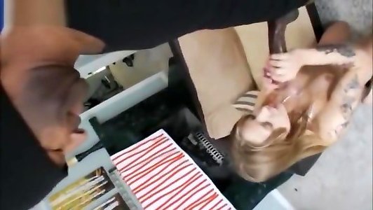 la chica lechosa adora a la gran polla de ébano y se traga el esperma