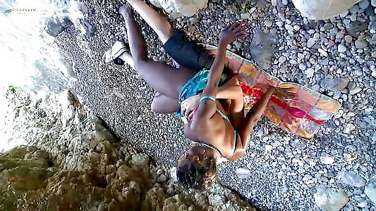 enorme rubia rose kisu recibiendo corrida facial en la playa
