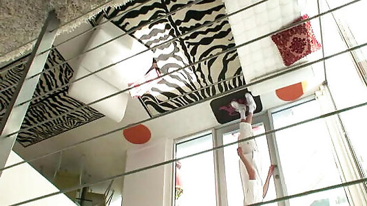 adorable puta estira sus piernas en el taburete y juega con su coño