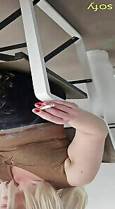 ¡una mujer muy madura de pelo claro se divierte en un sexy maid dealed en movimiento!¡santo cielo!