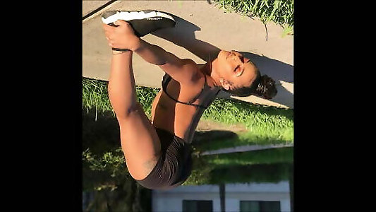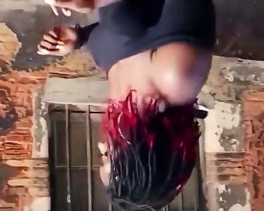 sheisnovember apretando sus gruesos pezones y sacudiendo su culo perfecto en una cuerda, de pie mientras se desenvuelve la ropa