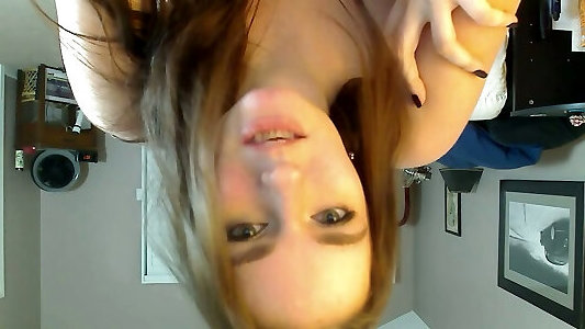 novia de punto de vista con tetas enormes seductoramente engrasando y masturbando a beau