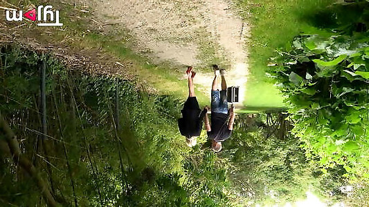 mujer rubia con tetas gordas y gordas monta madera al aire libre