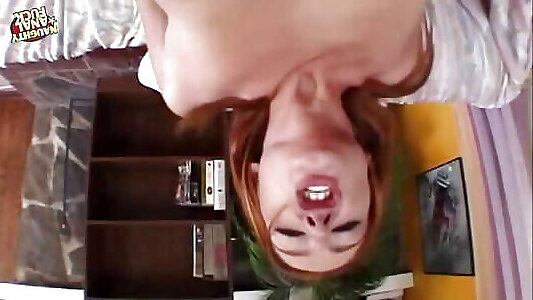 pelirroja atrevida habla sucio mientras una polla gruesa se desliza profundamente dentro de su apretado trasero
