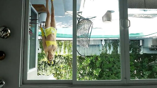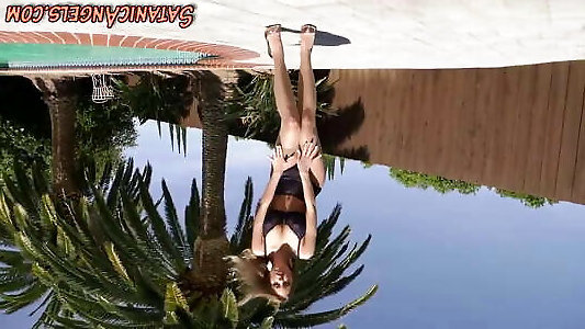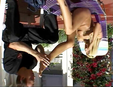 puta desagradable se lame la vagina y se la follan en la silla reclinable junto a la piscina