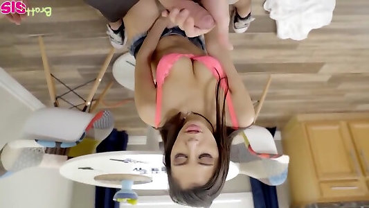 lil english teen katie love de pelo oscuro está cogiendo un palo de un nerd