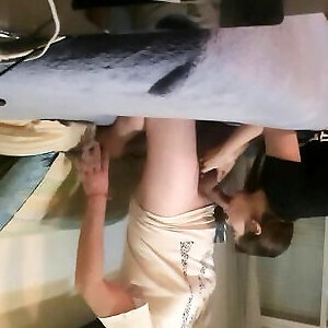 esposa lechosa-madrastra de rodillas chupando mi polla de color oscuro