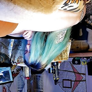 lorie cree de pelo azul haciendo gárgaras con la polla y tragando elroy & amp;039; s jizm