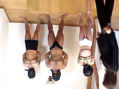 sesión bdsm de tres vías con una puta atada en prisión por putas asiáticas en la cárcel