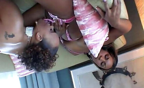 lesbianas de ébano con tetas enormes lamen el coño y golpean consoladores