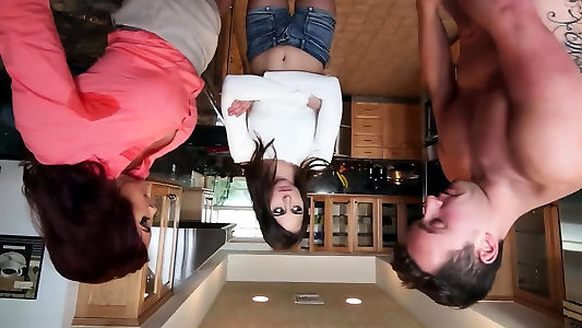cougar abrasador tienta a la adolescente para que la atrape en la cocina