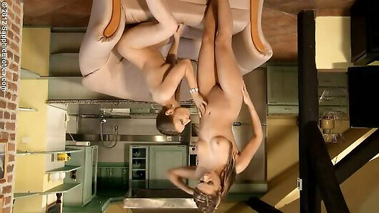 lascivas chicas lesbianas de pelo castaño muestran su celo