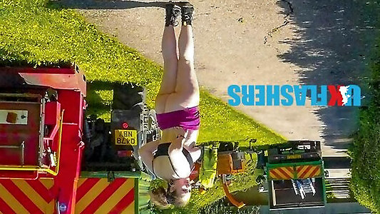 milf en traje de milf mostrando el coño charlando sucio en la noria desnudo público