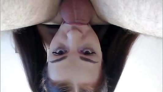 chica maravillosa y fresca con cara ideal, garganta profunda, una polla carnosa y recibiendo un trago de esperma, puro placer