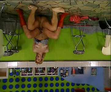 la mujer rubia exhibe el premio y muestra su sexualidad