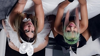 My little step sister is so lesbian biotch! Double female climax