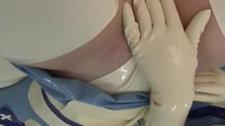 Nylon Nurse investigate patient with enema, butt-plug and fisting with her latex gloves