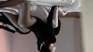 Beautiful honies wearing nylon pantyhose lingerie and cock teaser high heel shoes
