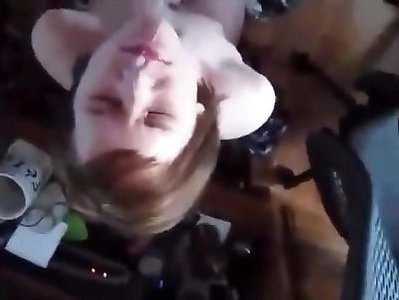 зрелая рыжеволосая веснушчатая самка полоскает горло, получает сперму на лицо