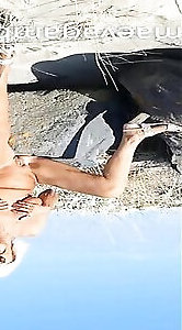 сексуальная незнакомка мастурбирует и делает минет на диком нудистском пляже - пляжный массаж члена