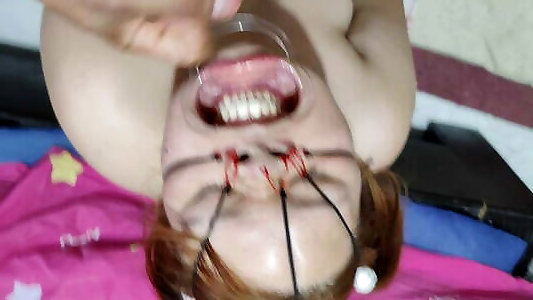 череп с кольцевым кляпом во рту-трахни послушную рабыню-шлюху