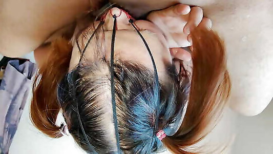 любительская кукла daddys трахается в челюсти, используя свои хвостики в качестве руля после того, как она лижет его задницу