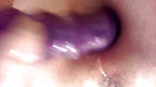 похотливый суперслут трахается в жопу с шипящей сосиской и игрушками
