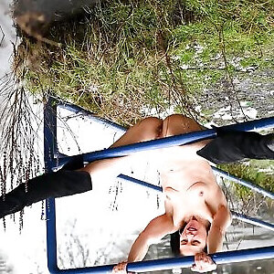 прогулка голышом по парку и публичная мастурбация на скамейке