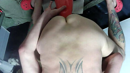 непринужденный анальный сеанс с игрушками xl для волосатой задницы с привязанными ремнями