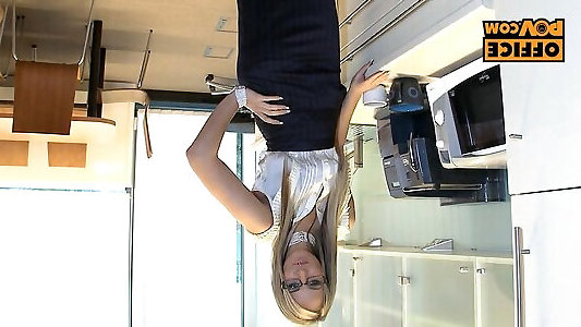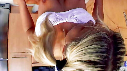 сногсшибательная немецкая красотка прыгает на твердом стержне на кухне