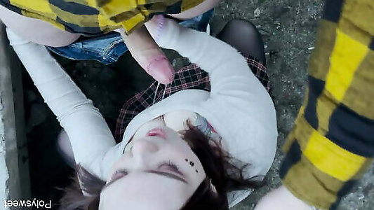 глубокая глотка на открытом воздухе с занудной темноволосой