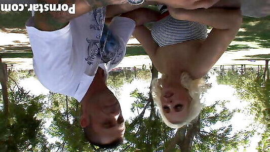 татуированный гурлз - гигантские шары загорелой милфы, размельченные в порошок на лужайке снаружи