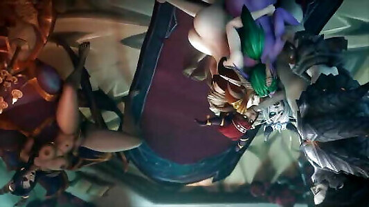 3d модель для косплея с большими сиськами впервые занимается групповым сексом с большими членами