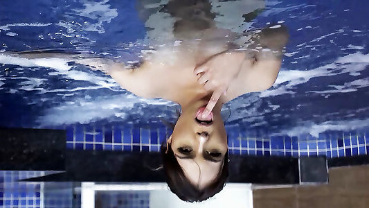 милашки с волосами цвета воронова крыла у бассейна развлекаются с вибраторами