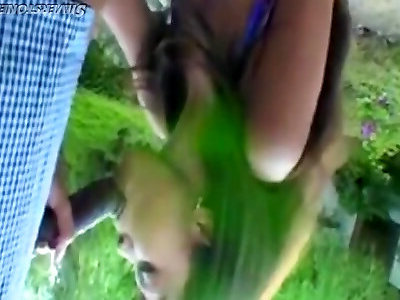 негритянка трахает свою волосатую киску на улице черным мужчиной с огромным членом