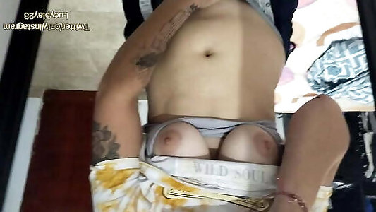 дзеи на мои сиськи, пока я примеряю свои сексуальные топы